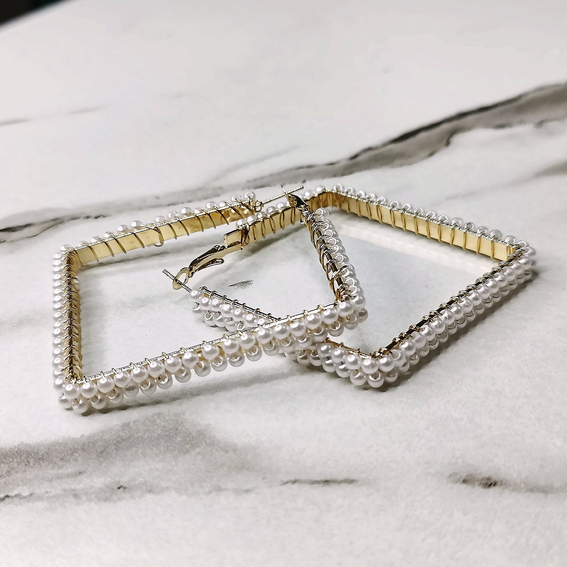 Add a touch of sophistication to your look with these Elegant Square Hoop Earrings featuring a unique gold-tone metal frame adorned with delicate pearl beaded edging. Designed in a modern square shape, these hoops blend contemporary style with timeless charm, making them a perfect accessory for both casual outings and formal events. The lightweight design ensures comfortable wear all day, while the secure clasp keeps them in place. Ideal for gifting or enhancing your own jewelry collection, these pearl-accented square hoops are a must-have for fashion-forward women. Perfect to pair with dresses, ethnic wear, or chic office outfits, they bring an instant touch of elegance to any ensemble.
