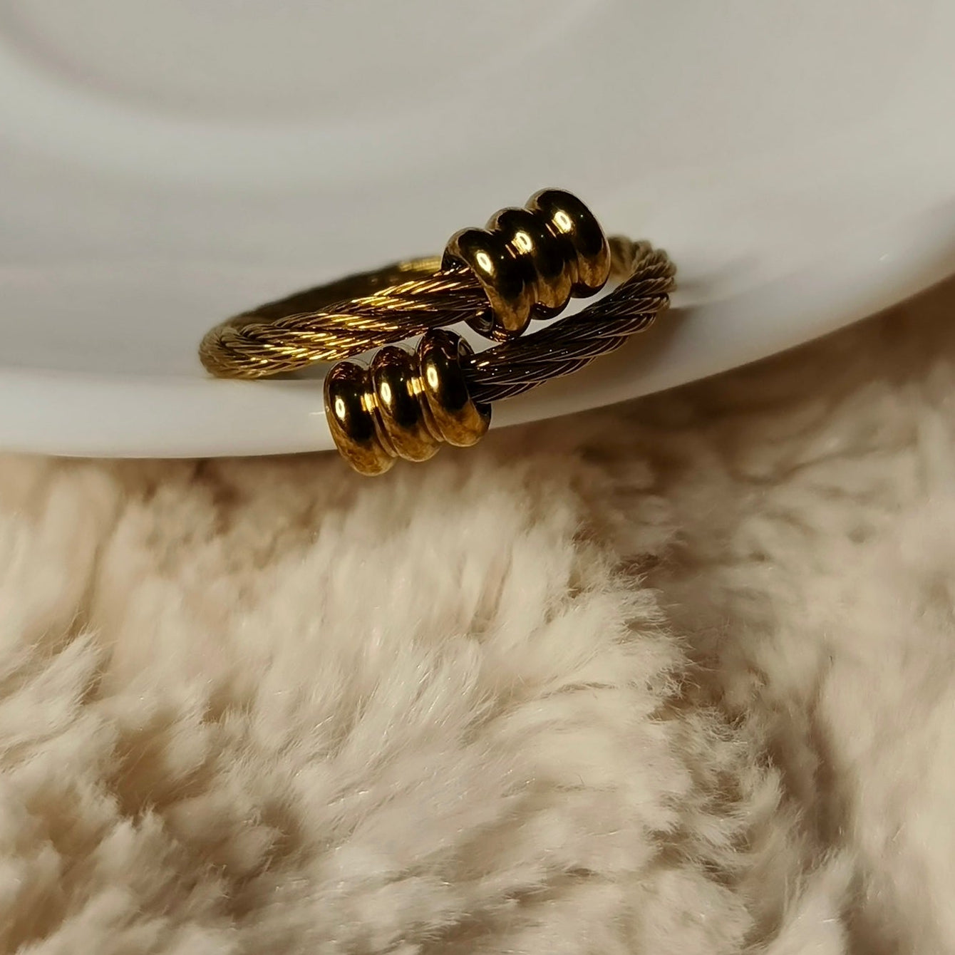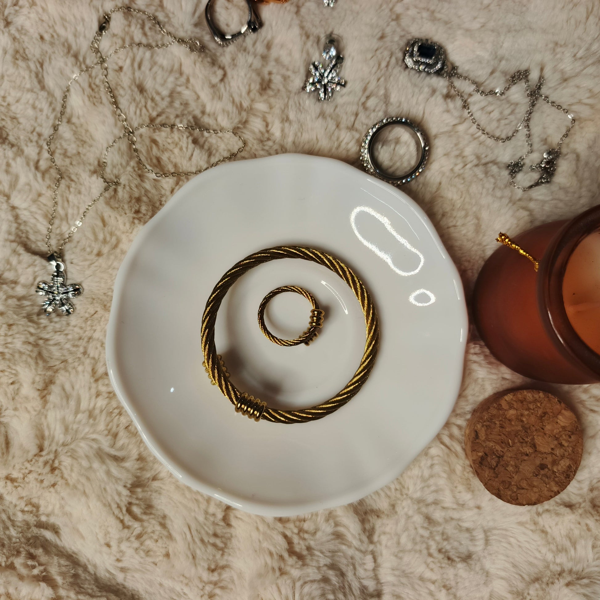 Gold Cable Bracelet & Ring Set for Women | Stainless Steel Jewelry