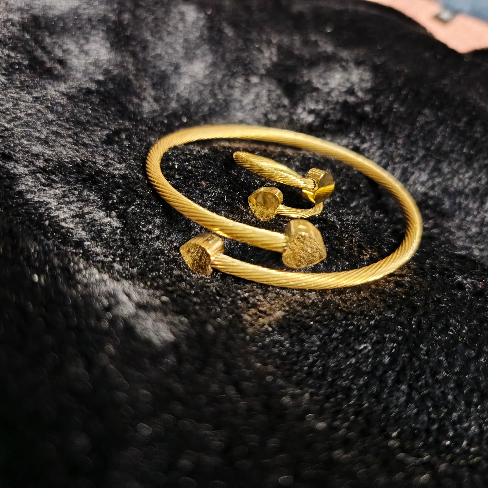 Gold Heart Cuff Bracelet for Women | Elegant Adjustable Bangle and Ring