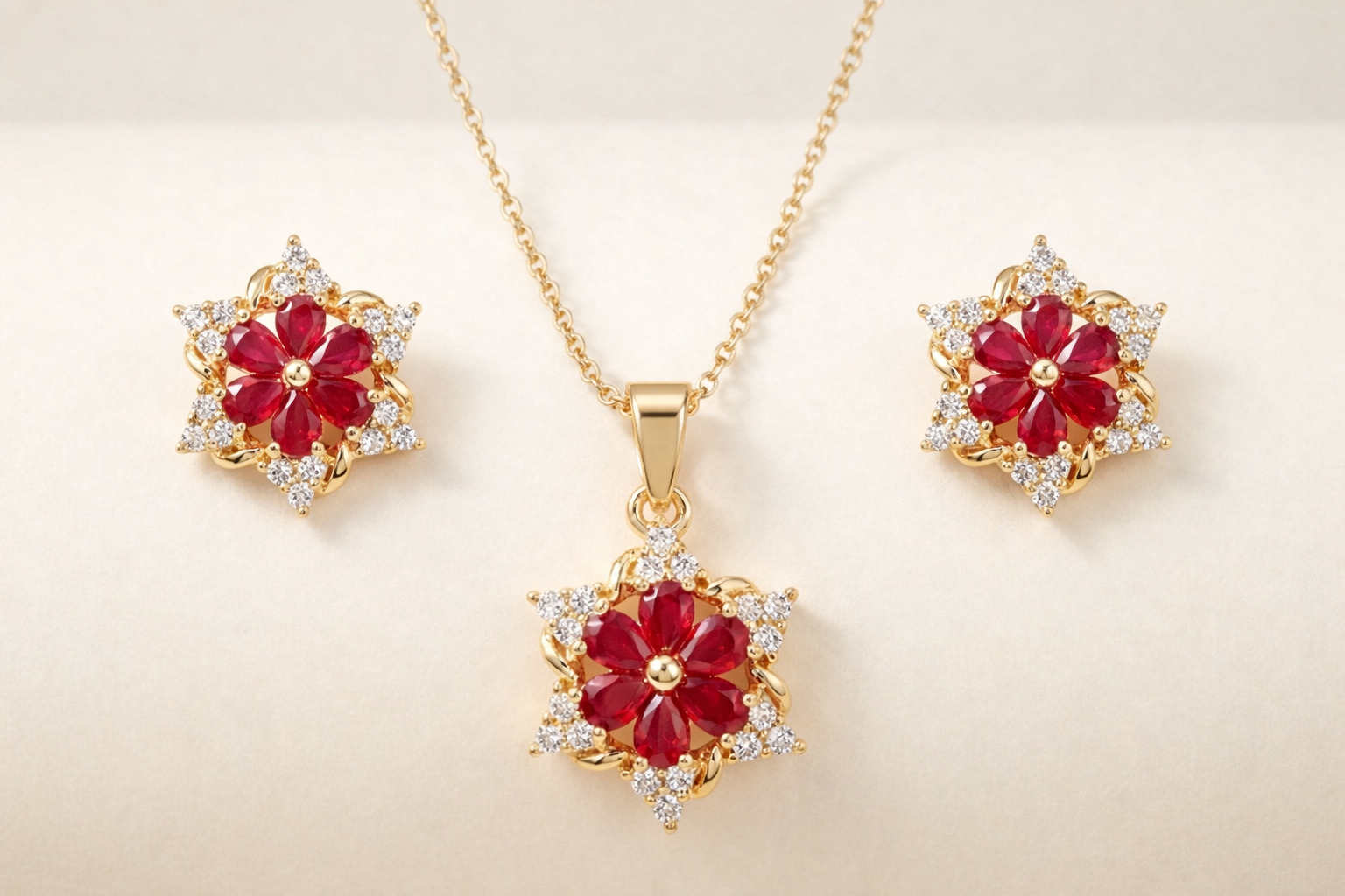 Red Stone Gold Pendant & Earrings Set – Party Wear Pakistan