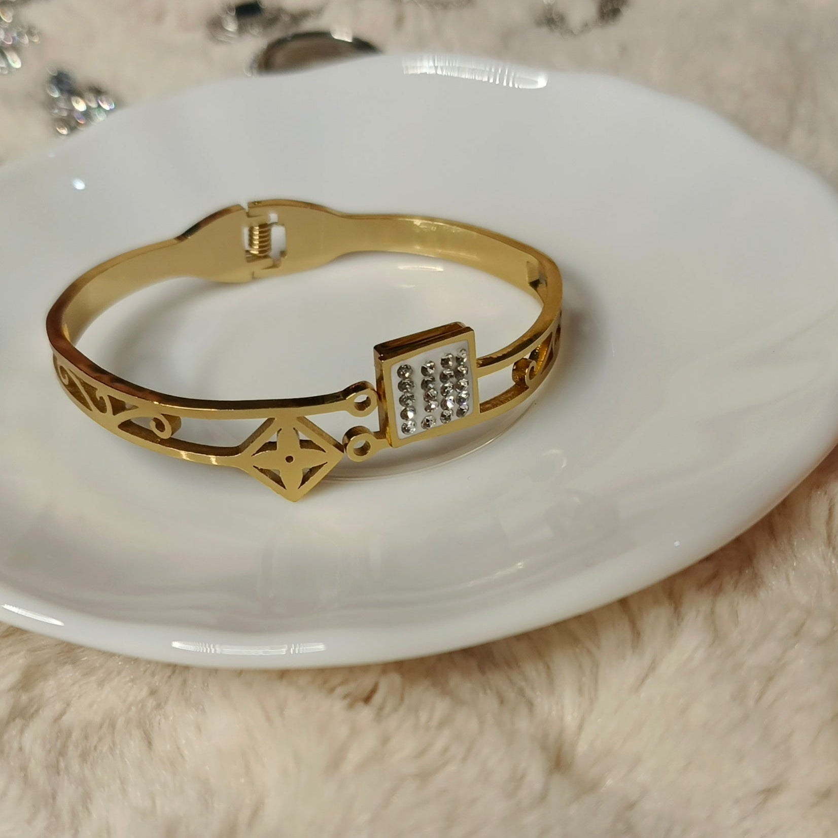 Gold Square Charm Bracelet for Women | Stainless Steel Designer Jewelry