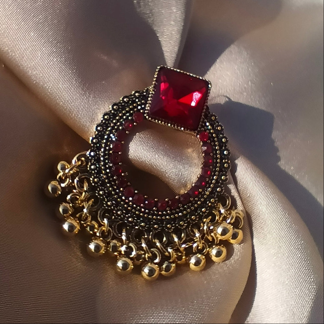 Antique Stone Stud Earrings with Maroon Beaded Detailing