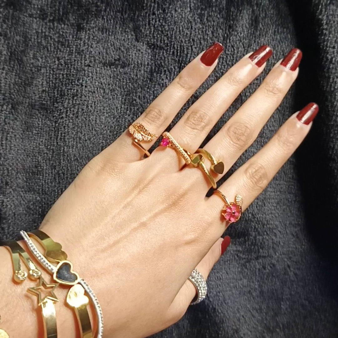 Adjustable Leaf-Inspired Ring with Sparkling Zircon Stones – Elegant Minimal Design