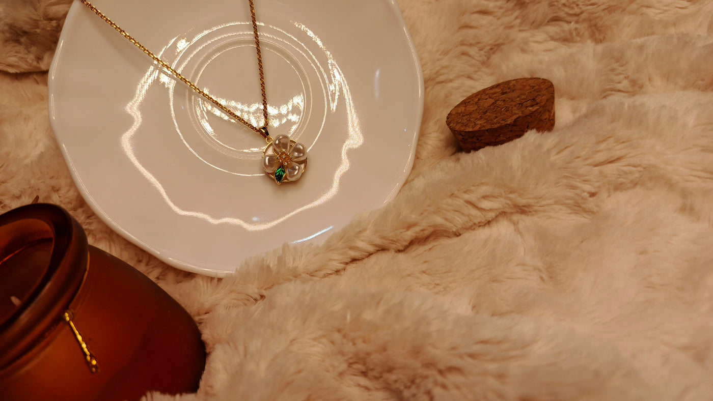 Gold Floral Pearl Pendant Necklace for Women